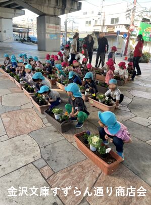 また、11月末のすずらん通り商店会では、地域のあおぞら谷津保育園の園児達にお手伝いいただきながら、いっしょに花植えを行いました。