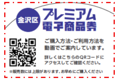 金沢区プレミアム電子商品券のご利用方法については上記画像赤枠の二次元バーコードを読み込むことでご覧いただけます。